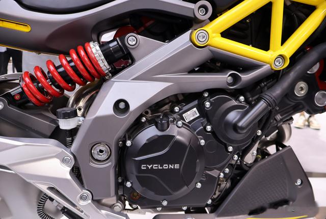 在官方最新公布的信息中,赛科龙RA1000的马力宣称不止百匹,并且官方极速表现可以达到235km/h,性能表现十分强悍。而在工信部的信息中,该发动机实际排量为996cc,最大功率为78.5kw/8500rpm,最大扭矩98N·m/6500rpm,并且采用水冷V型双缸设计,比23年摩博会亮相时的参数更高。同时也可以从参数中看出该车低扭矩的爆发力;初次体验的时候一定要小心拧油门。